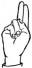 На ћирилици написано ИВА ТРИКОШАНИН састоји се из 13 слова [?]. Исписано ћириличном једноручном азбуком за глувонеме: